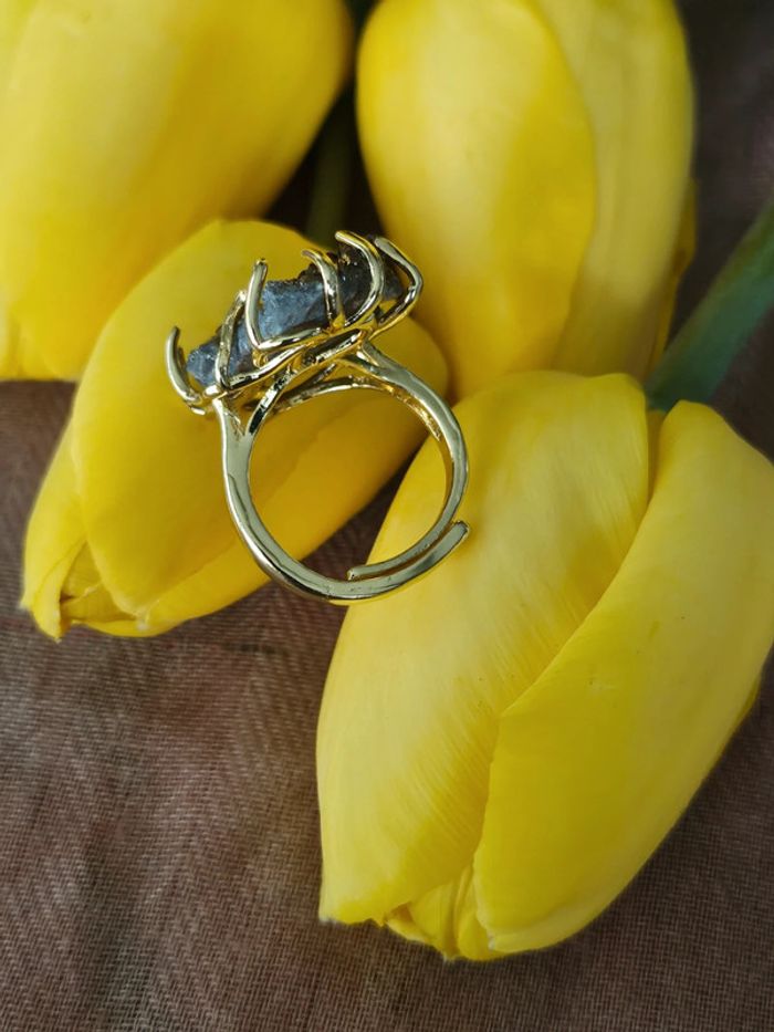 Bague avec ses 4 griffes en pierre géode de quartz - photo numéro 2