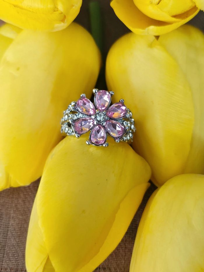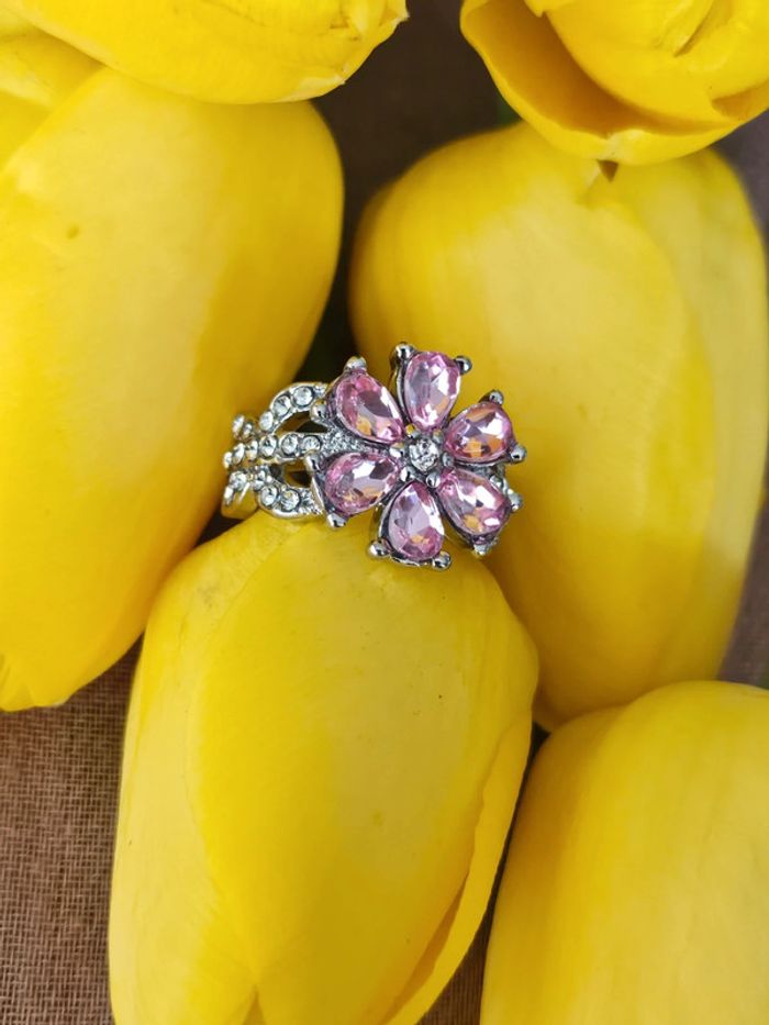 Bague fleur en pierres topaz rose et zirconium - photo numéro 1