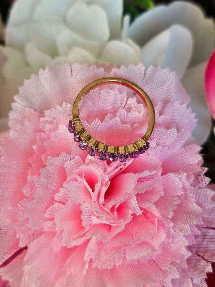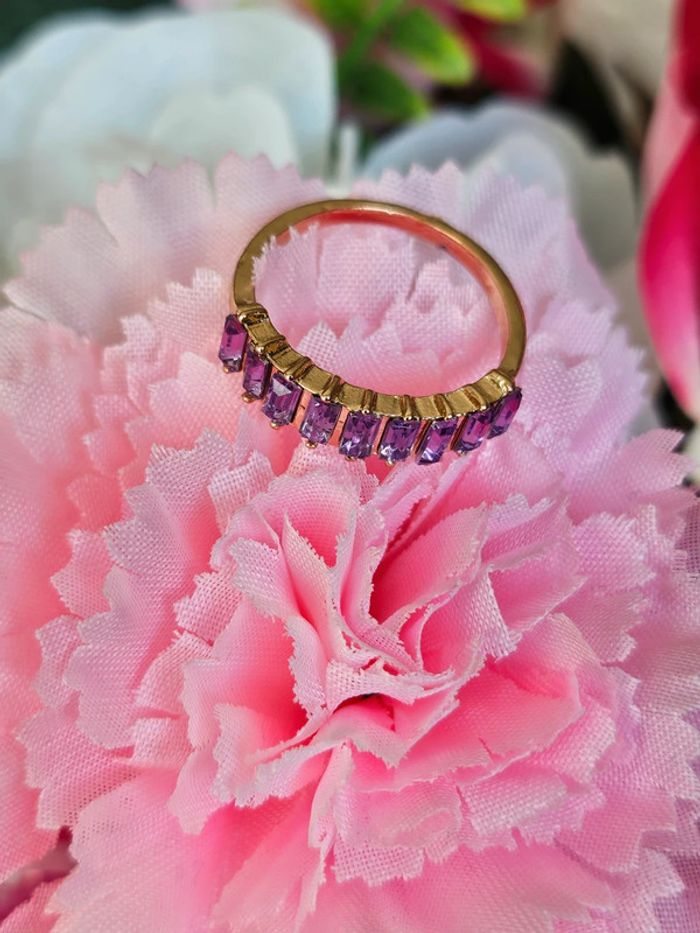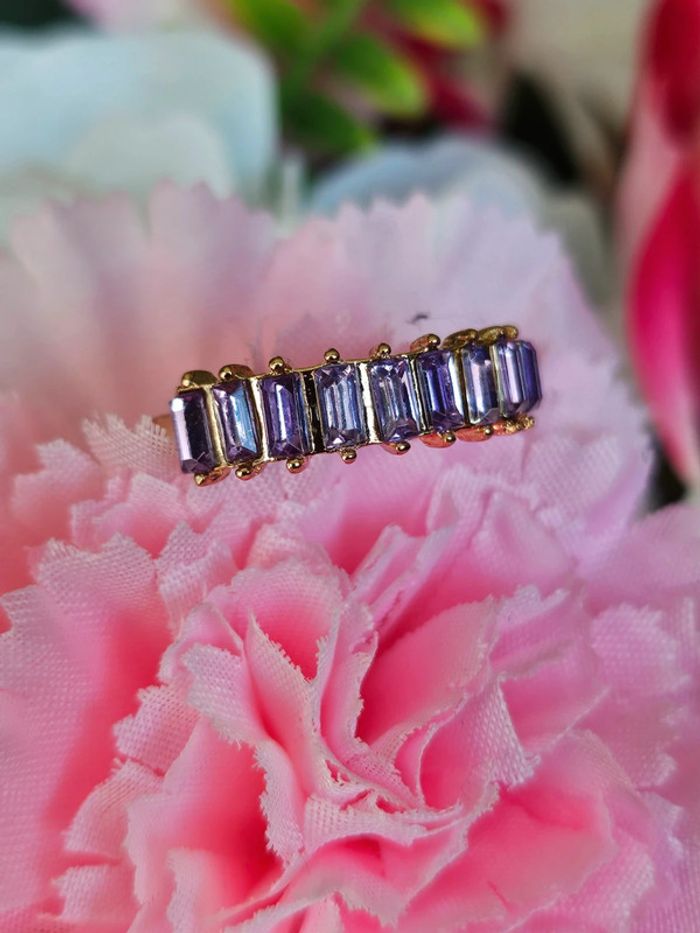 Je vous propose cette bague avec ses pierres topaz violette. Neuve sans étiquette, non utilisée. En acier inoxydable hypoallergenique ( évite les allergies). Résistante a l eau. Taille 56 (09/04/2025*067)