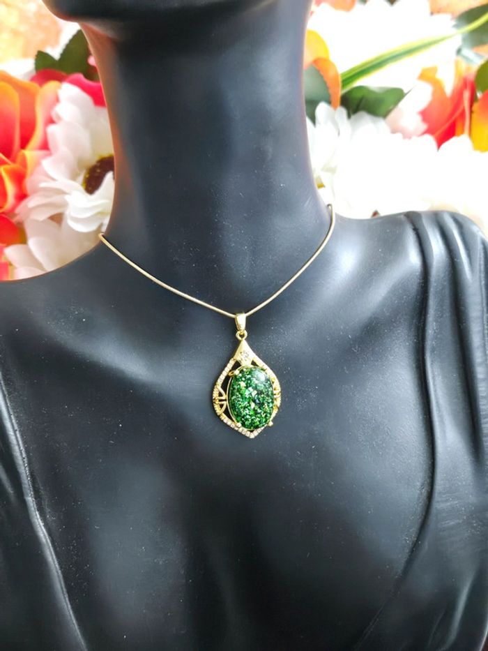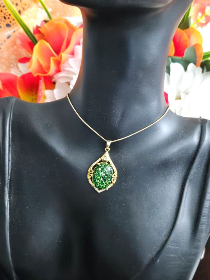 Collier avec sa pierre sélénite verte - photo numéro 1