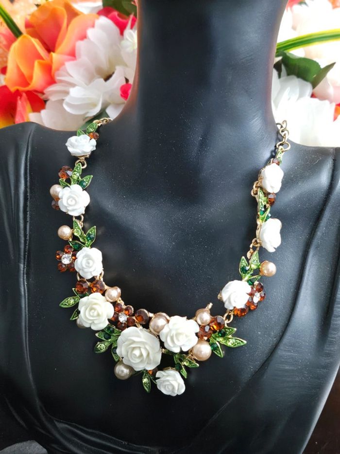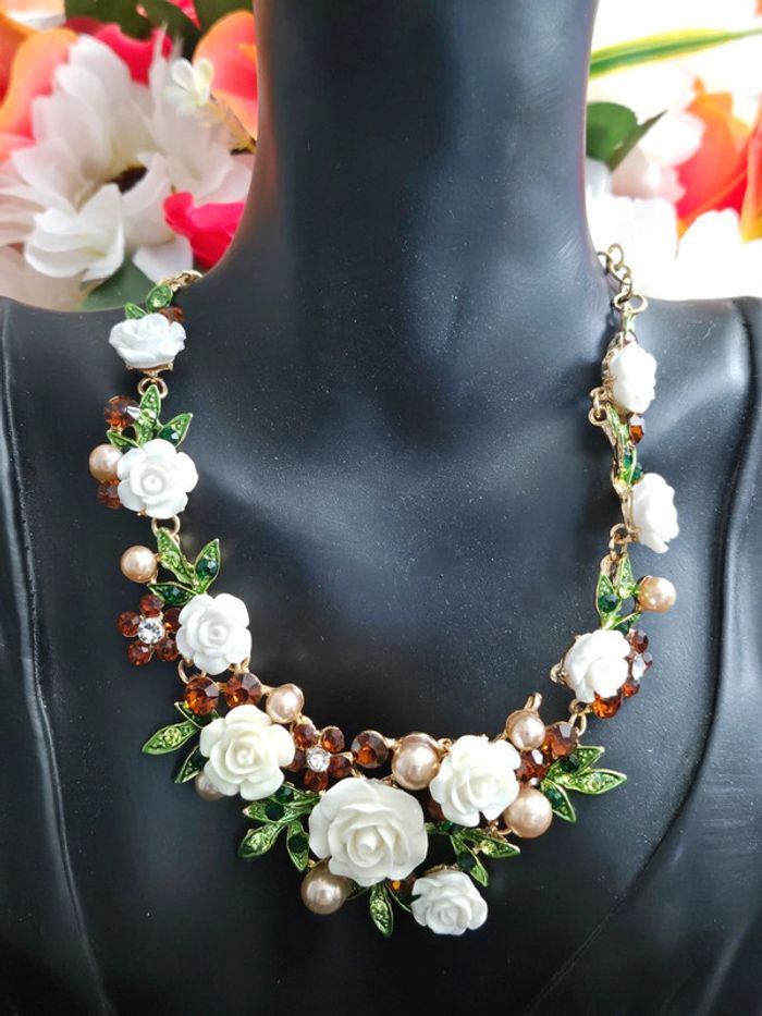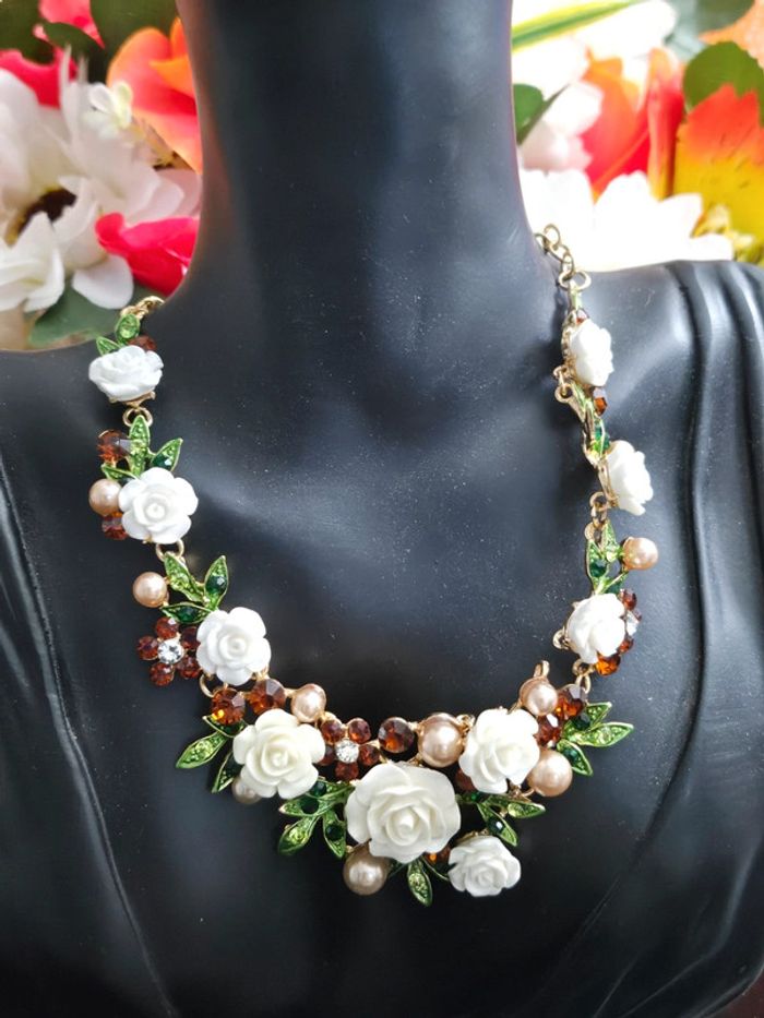 Collier avec ses fleurs et ses pierres topaz - photo numéro 4