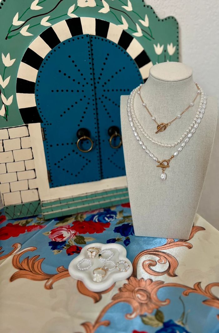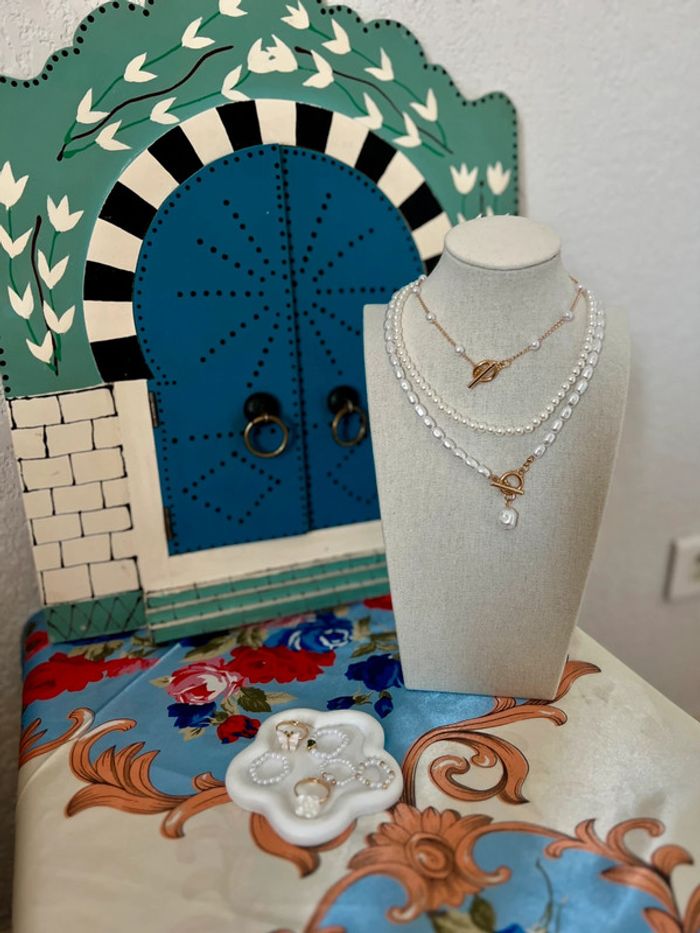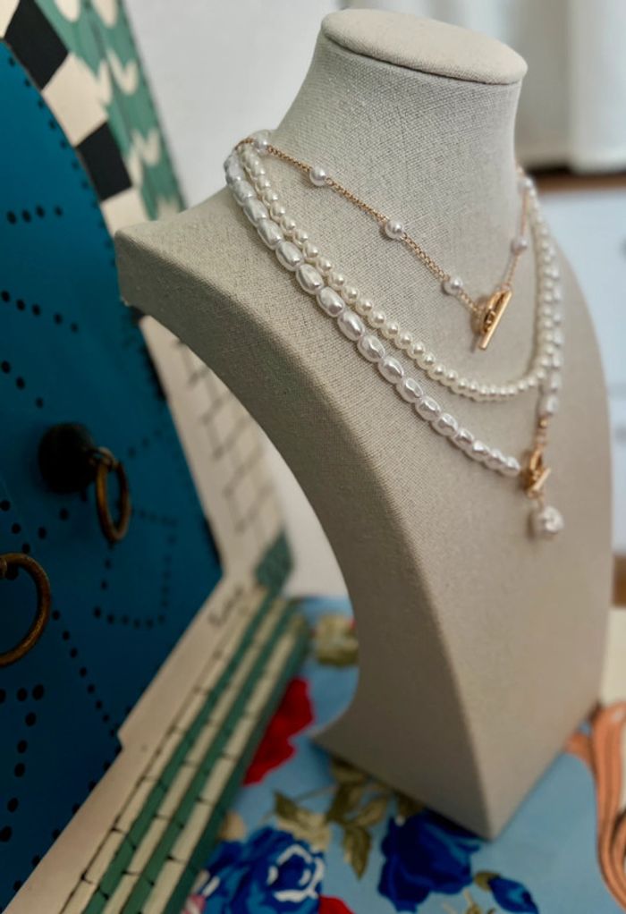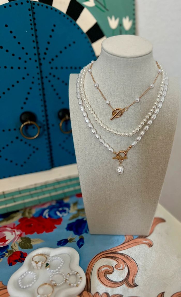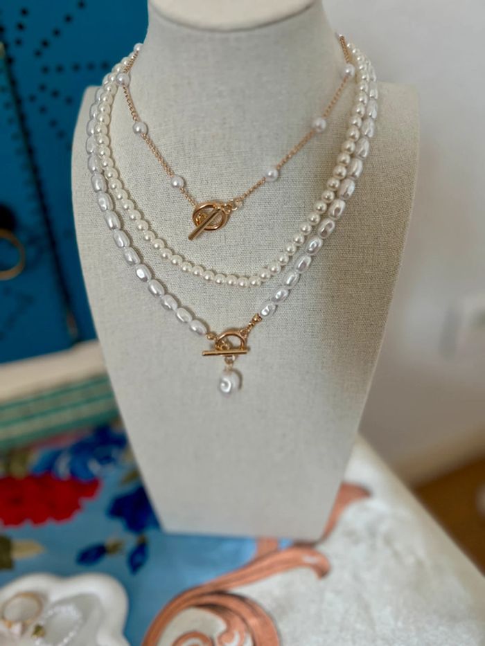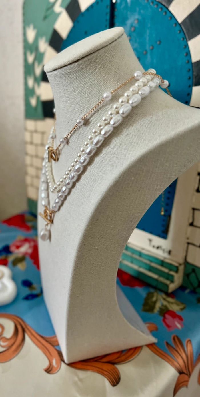 Collier perles 3 pièces ajustable neuf