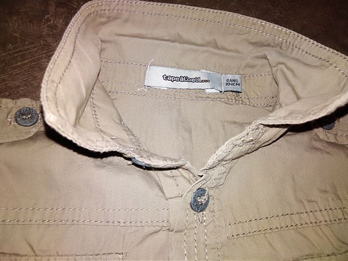 Bonjour, je vends une chemise en manches courtes, 100% coton. 4 ans. Beige foncé. Très bon état. Tape à l'œil