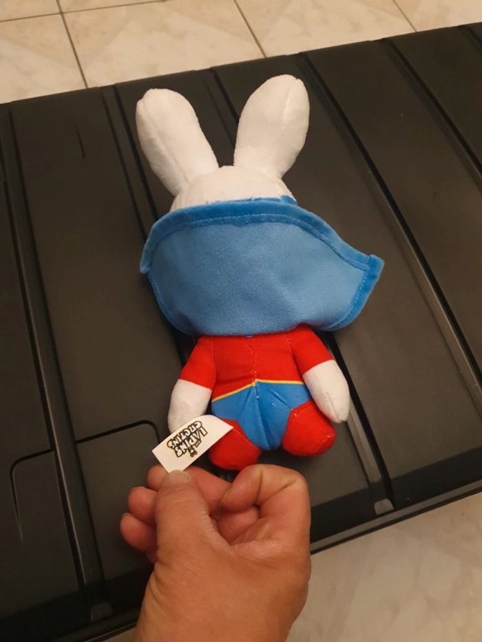 Peluche lapin cretin avec cape et masque Peluche qui dait un cri