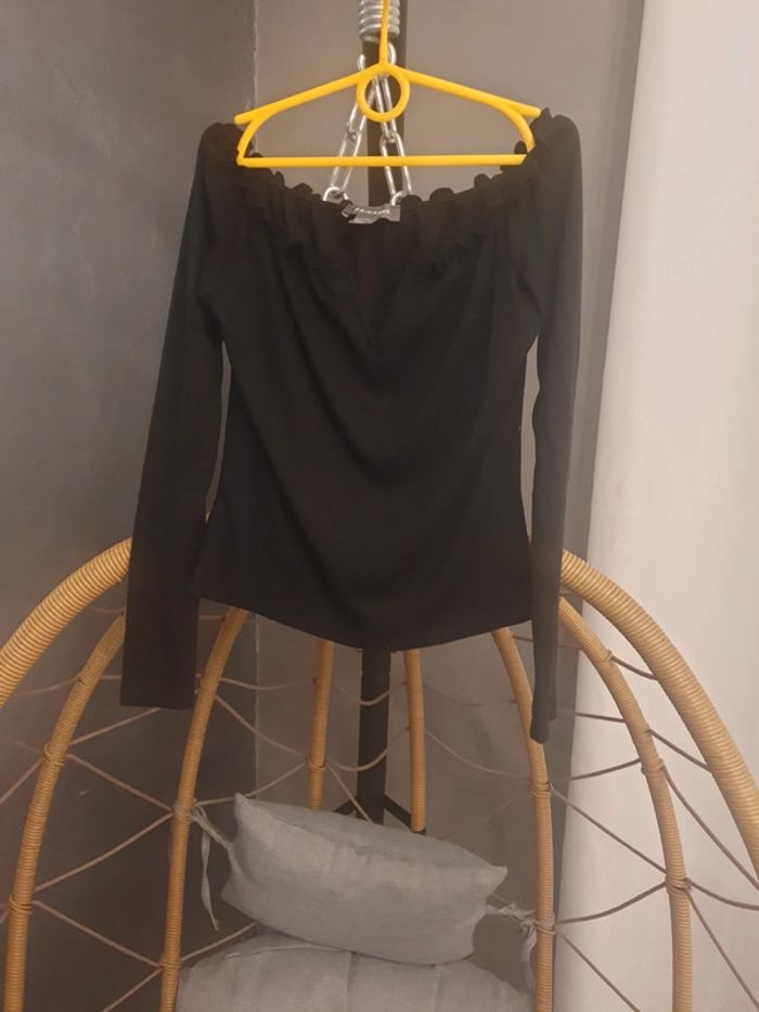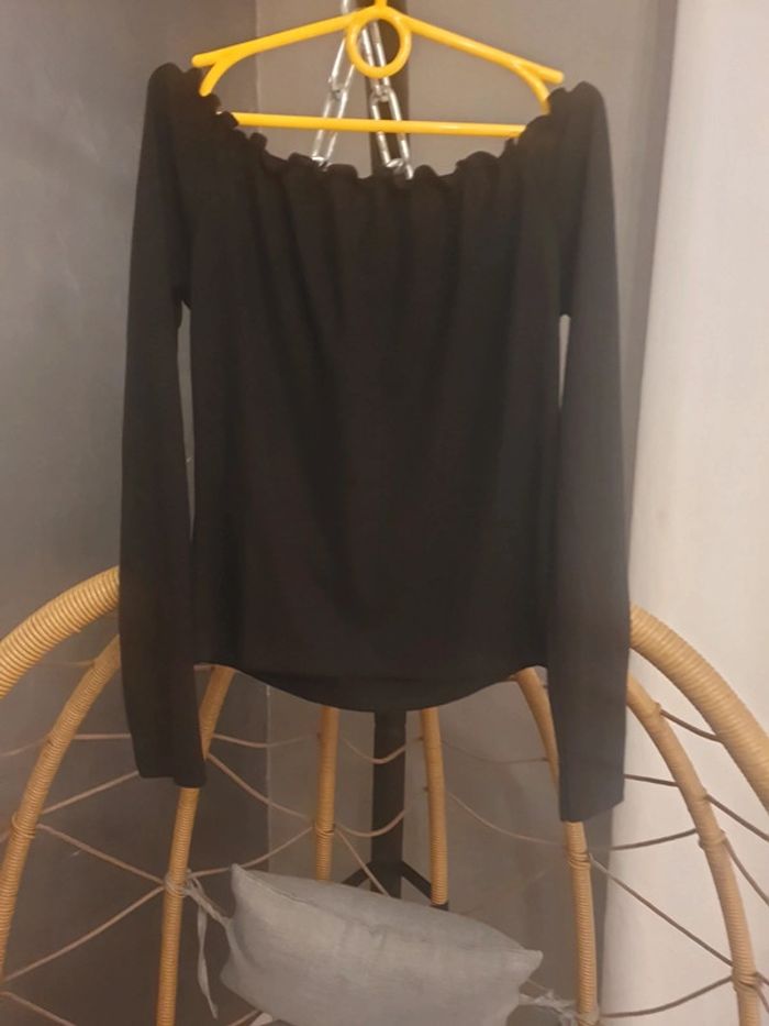 Haut noir manche longue elastiquebsur le haut avec petite encolure v