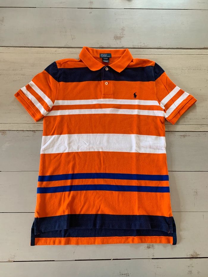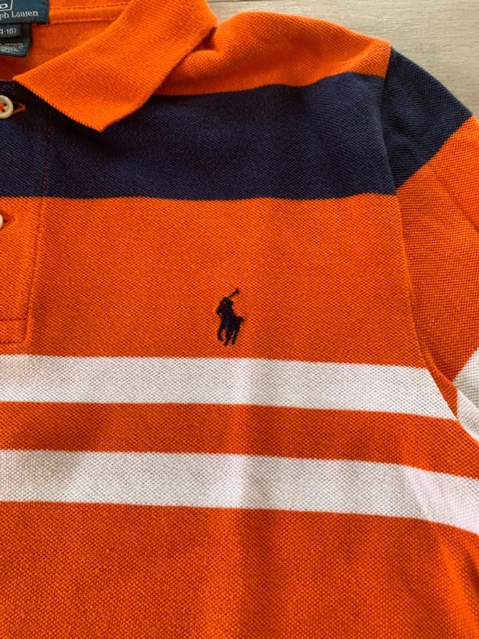 Polo Ralph Lauren orange bandes bleu blanc - photo numéro 1