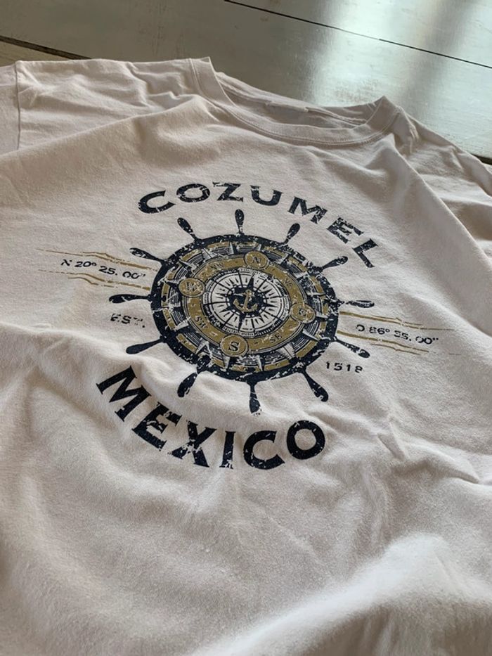 Tee shirt vintage printed voyage souvenir Cozumel Mexico rose des vents - photo numéro 1