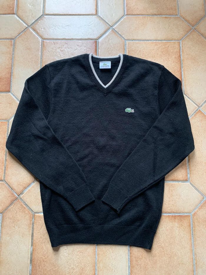 Produit : Pull col V taille S Lacoste vintage devanlay noir laine Marque : Lacoste Taille : S État : Très bon état