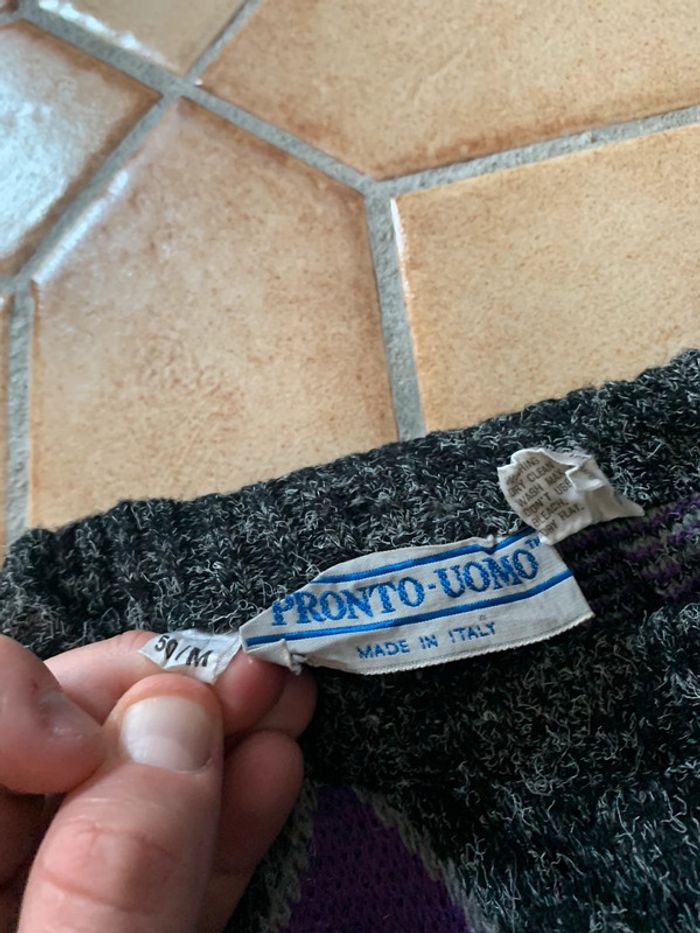 Produit : Pull d’hiver vintage 90’s motifs Crazy disco triangle made in italy Marque : Pronto-uomo Taille : M État : Très bon état (petit trou à rattraper)