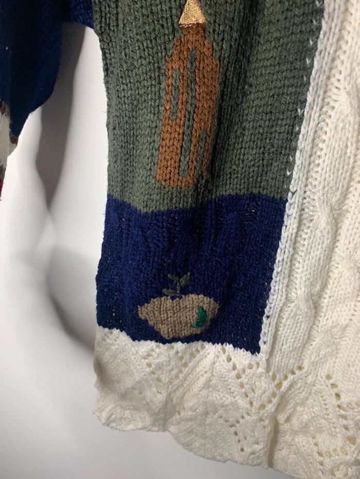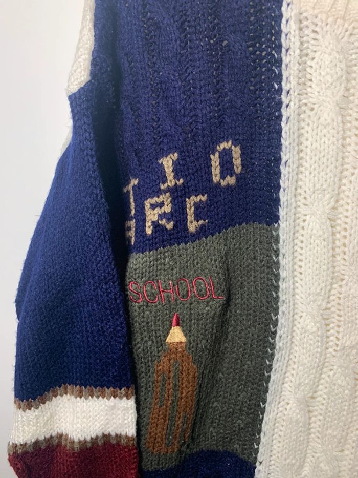 Pull d’hiver style motifs écoliers knitted brodé vintage - photo numéro 5