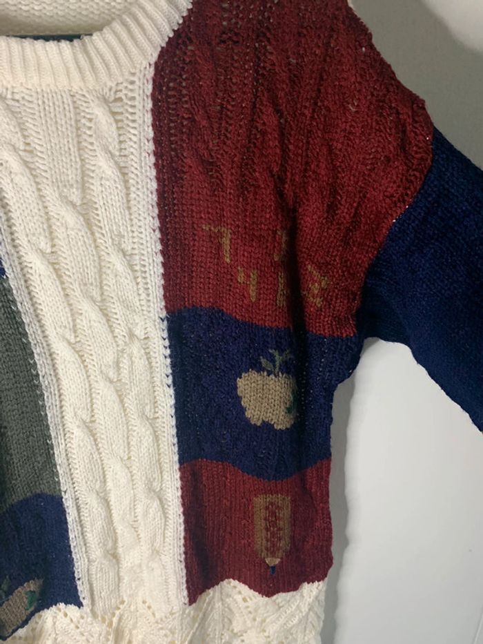 Pull d’hiver style motifs écoliers knitted brodé vintage - photo numéro 2
