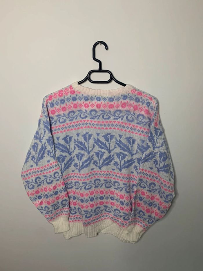 Pull d’hiver motif floral rose violet vintage 90’s CoCo loco - photo numéro 4