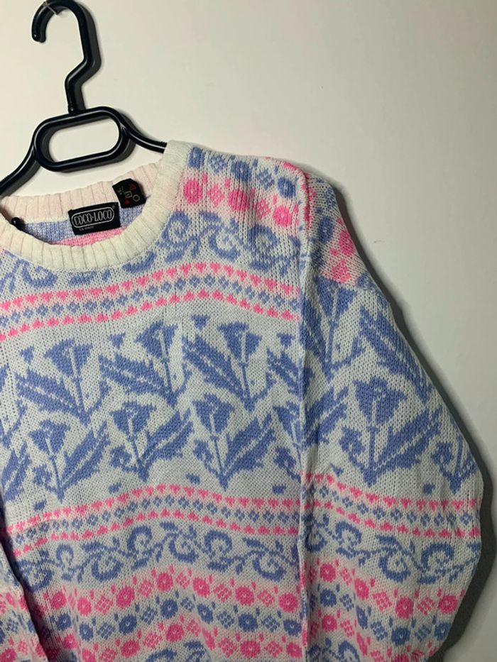 Pull d’hiver motif floral rose violet vintage 90’s CoCo loco - photo numéro 3