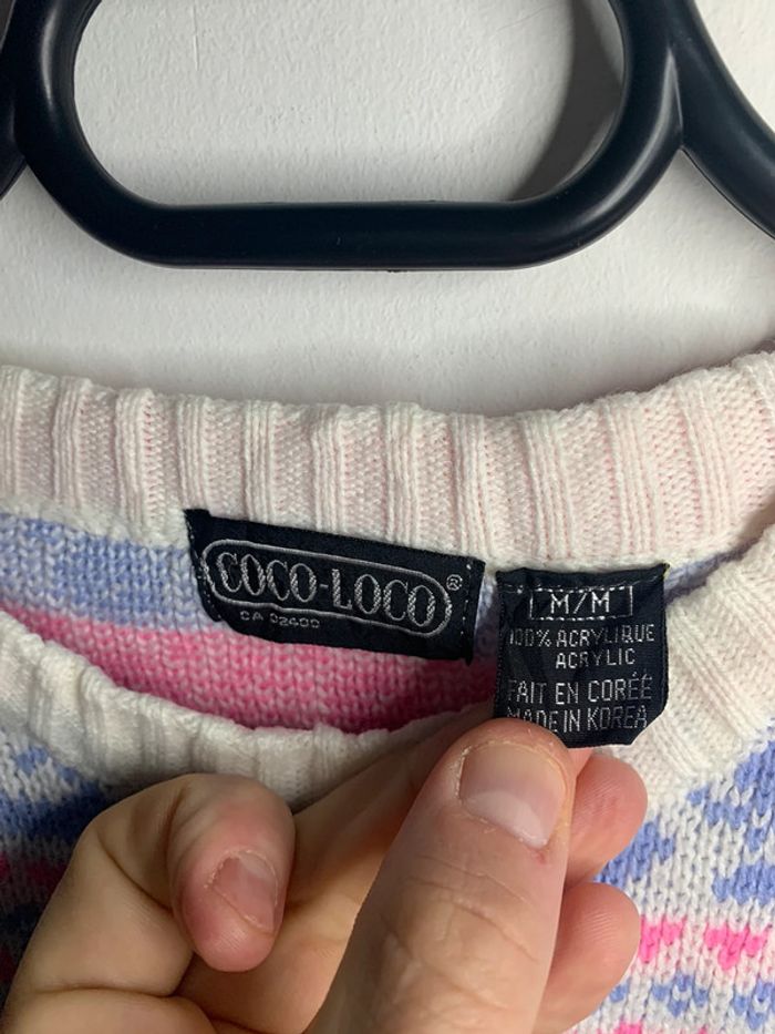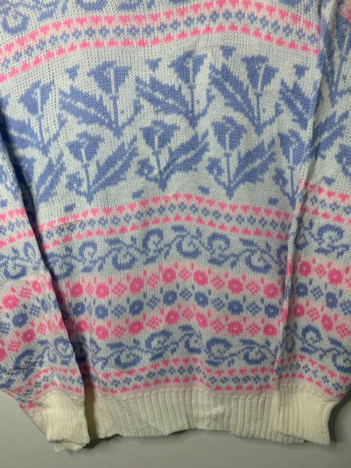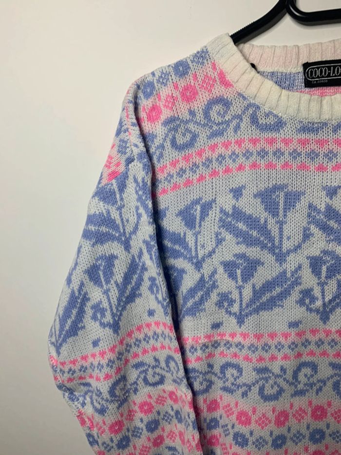 Pull d’hiver motif floral rose violet vintage 90’s CoCo loco - photo numéro 6