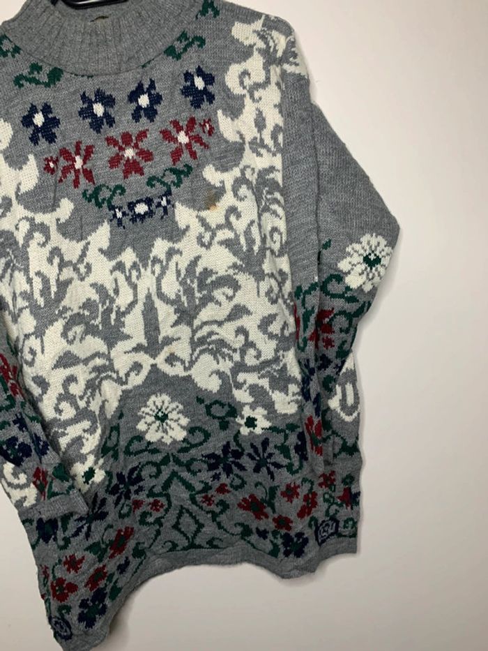 Pull long d’hiver motif floral vintage style bohème ethnic Made in usa - photo numéro 7