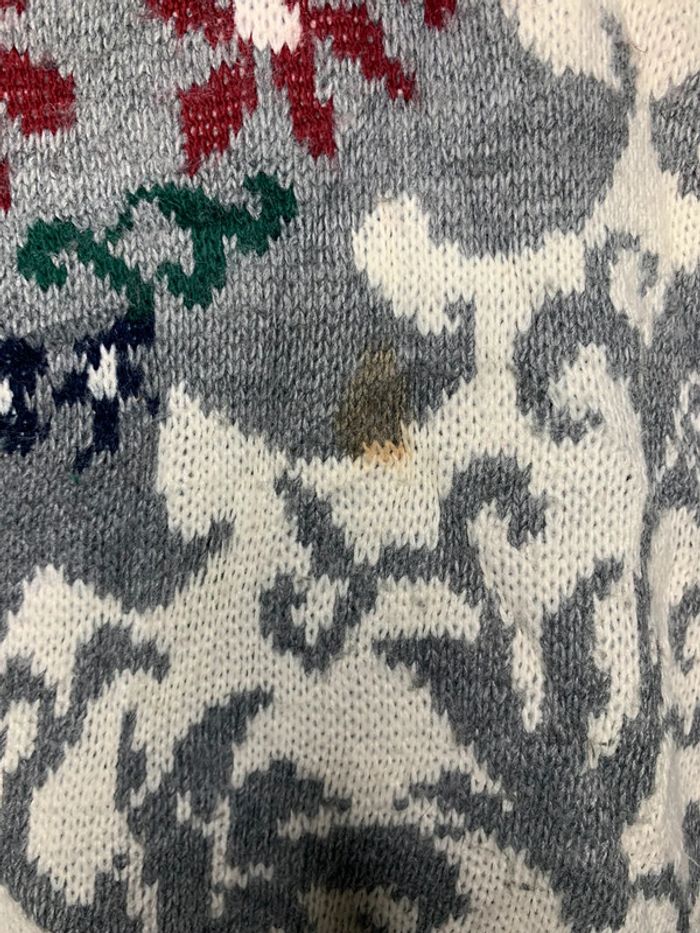 Produit : Pull long d’hiver motif floral vintage style bohème ethnic Made in usa Marque : Vintage Taille : M État. : Bon état (tâche voir photo)