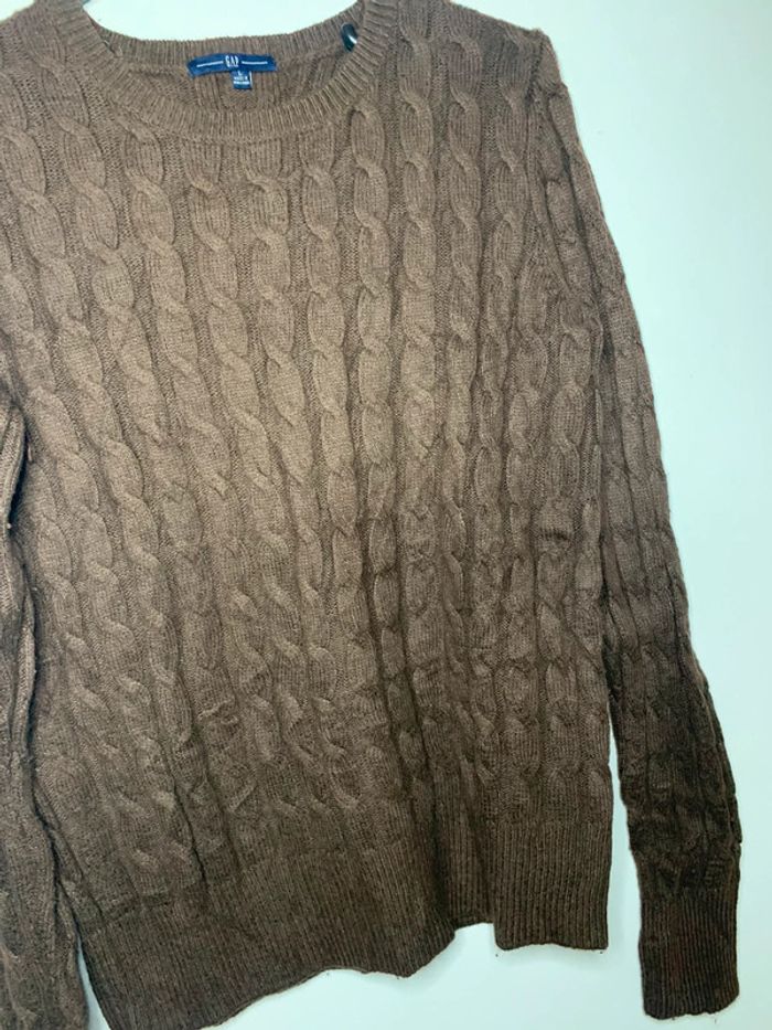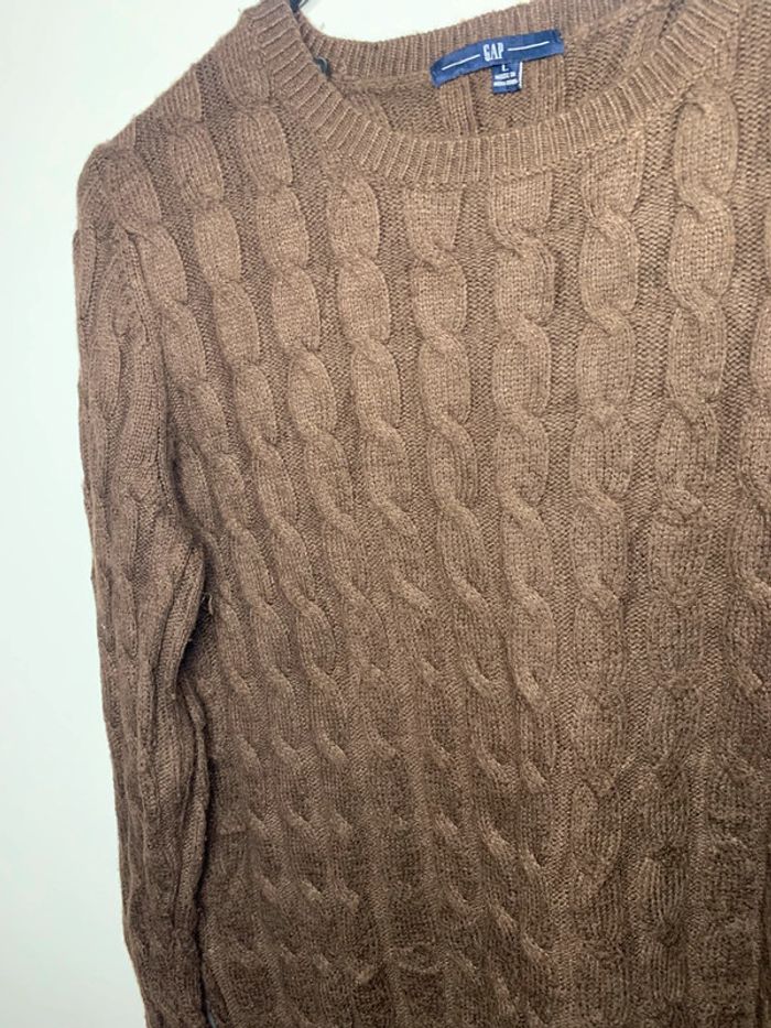 Pull Gap vintage torsadé cable knit rabbit haïr  marron taille L - photo numéro 1
