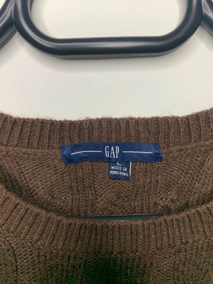 Produit : Pull Gap vintage torsadé cable knit rabbit haïr marron taille L. 10% angora Marque : Gap Taille : L État. : Très bon état
