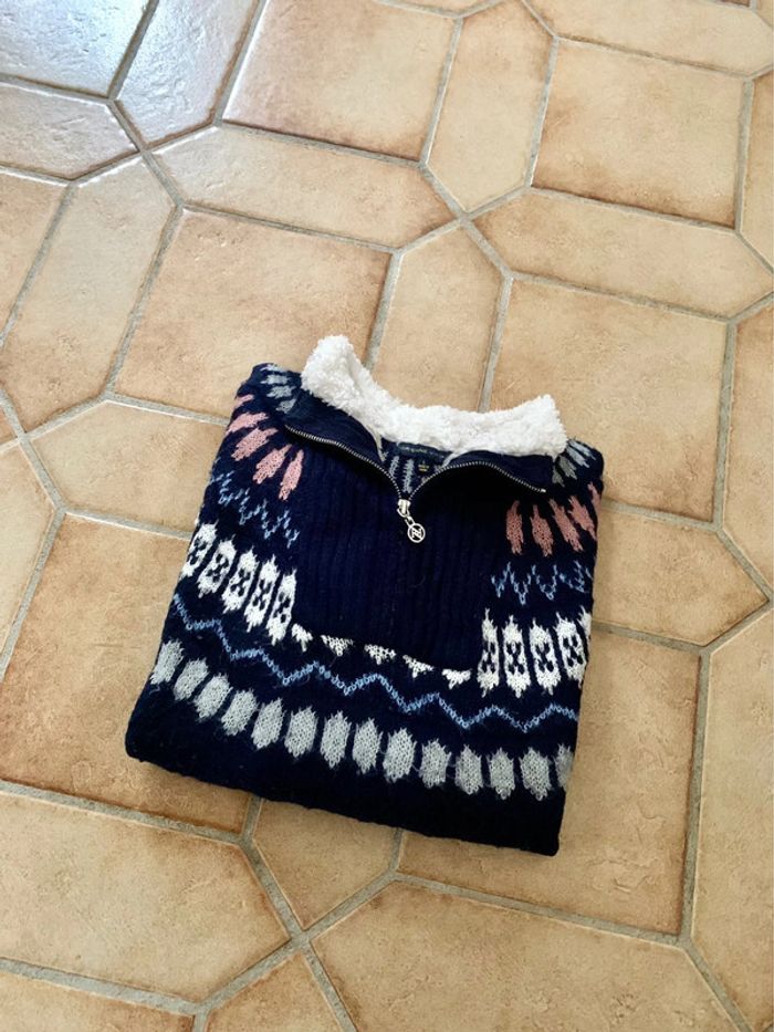 Pull gilet col camionneur col sherpa motif ethnic vintage Y2k 90’s - photo numéro 1