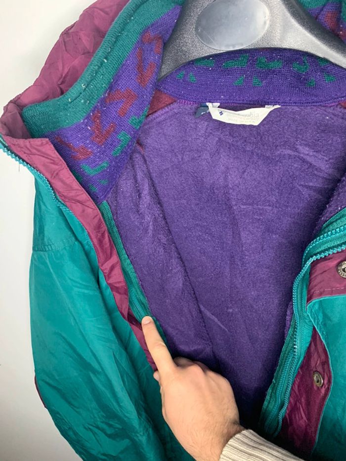 Produit : Veste / blouson de ski Columbia Vintage 90’s + polaire doublure détachable. Manteau 2 en 1. Peut être porter sans la polaire / Fleece Marque : Columbia Taille : L État : Très bon état