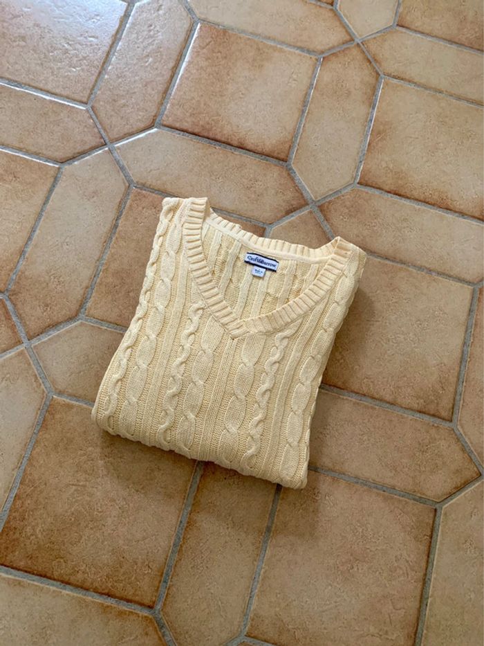 Pull col V  torsadé cable knit vintage croft & barrow Y2k jaune - photo numéro 6