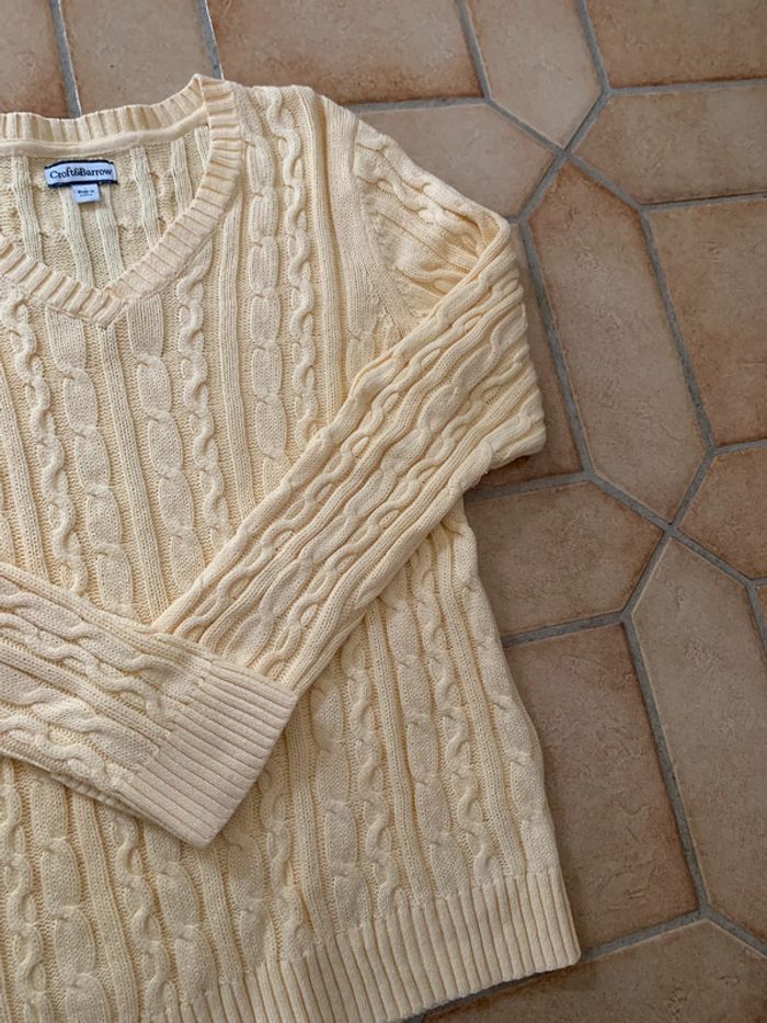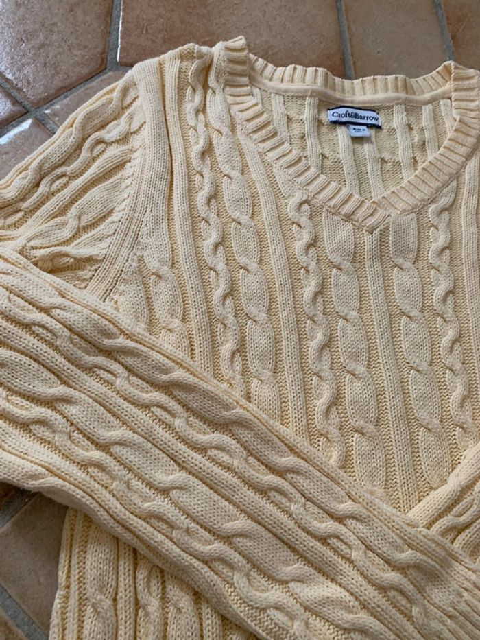 Pull col V  torsadé cable knit vintage croft & barrow Y2k jaune - photo numéro 5