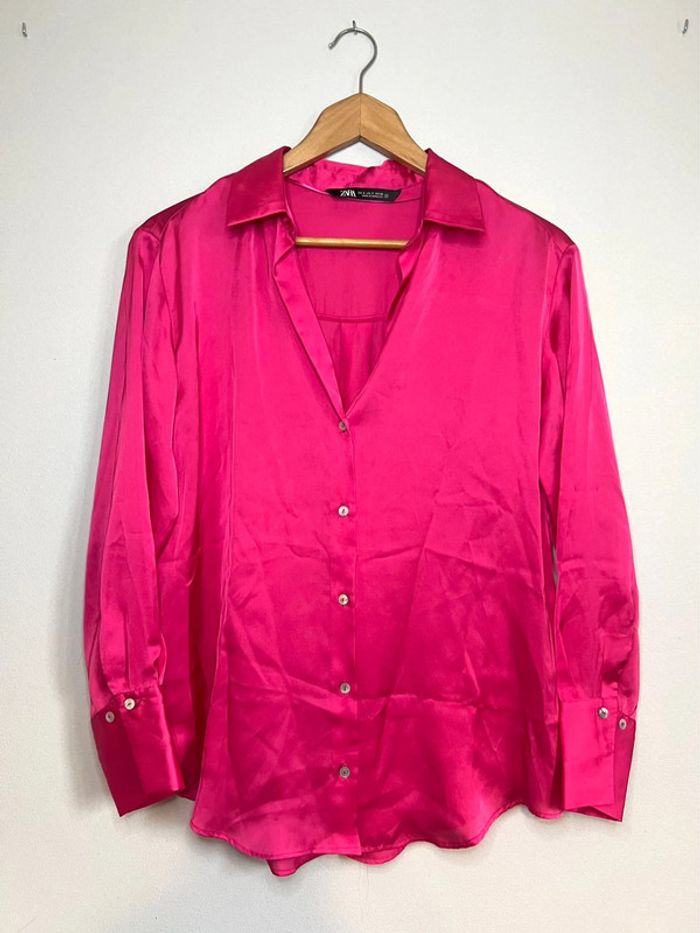 Chemise manches longues, taille S / 36, couleur rose fuchsia, marque Zara, jamais portée, état neuf sans étiquette Les réductions sur les lots sont activées automatiquement J’accepte toutes vos offres, je dois me débarrasser de l’ensemble des vêtements