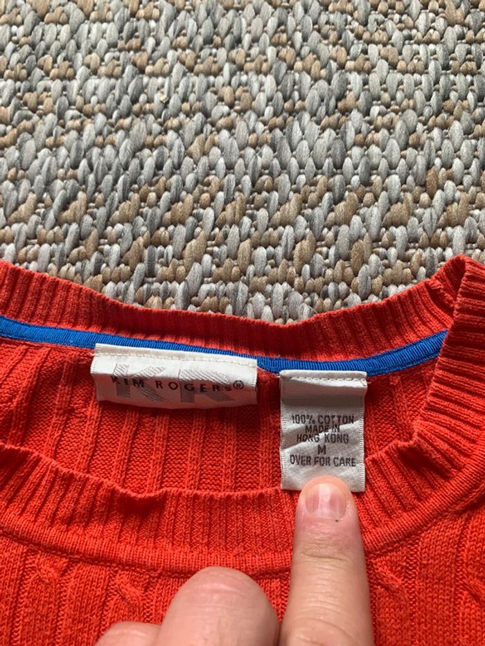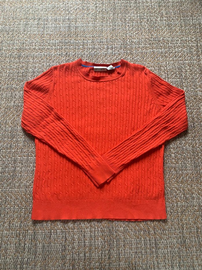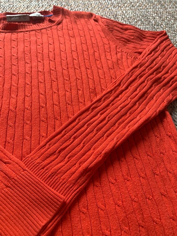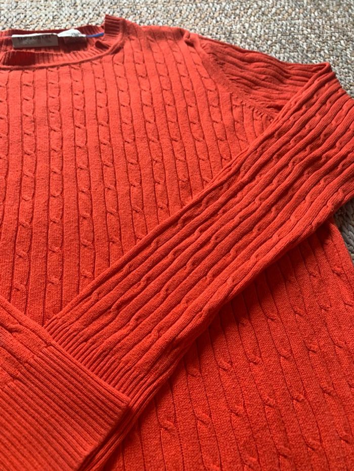 Produit : Pull col rond vintage crewneck style torsadé Y2k orange / rouge. 100% coton Marque : Kim rogers Taille : M État : Très bon état #knit #knitwear #cableknit #knitted