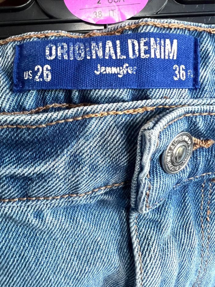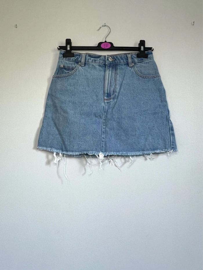 Jupe en jean, taille 36 / S, couleur bleu clair, marque Jennyfer, matière 100% coton, portée très peu de fois, en parfait état Les réductions sur les lots sont activées automatiquement J’accepte toutes vos offres, je dois me débarrasser de l’ensemble des vêtements