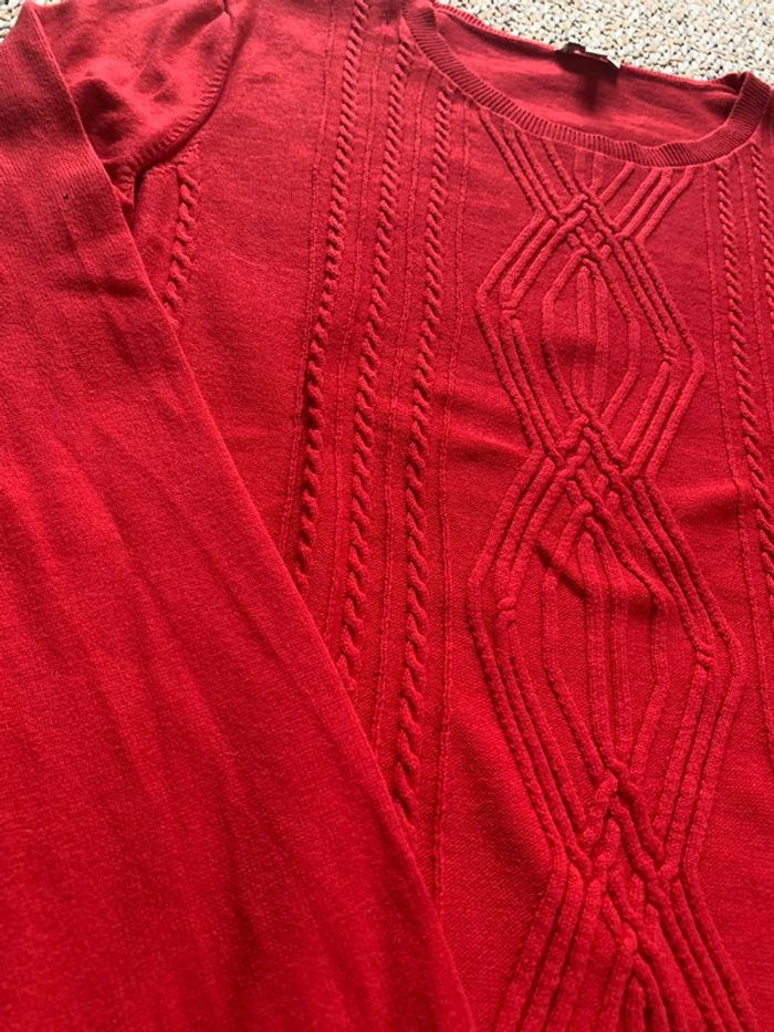 Pull rouge crewneck vintage style torsadé knit rouge - photo numéro 8