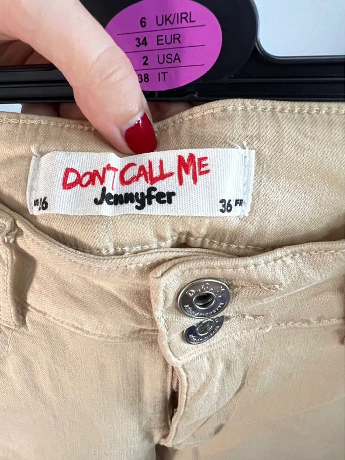 Jean slim, taille 36 / S, couleur beige, marque Jennyfer, jamais porté, état neuf sans étiquette Les réductions sur les lots sont activées automatiquement J’accepte toutes vos offres, je dois me débarrasser de l’ensemble des vêtements