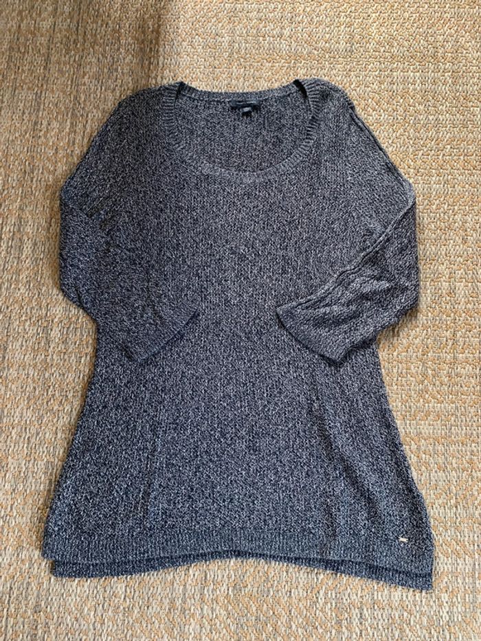 Pull / sweat col V long hiver Tommy Hilfiger en maille gris taille XL - photo numéro 1