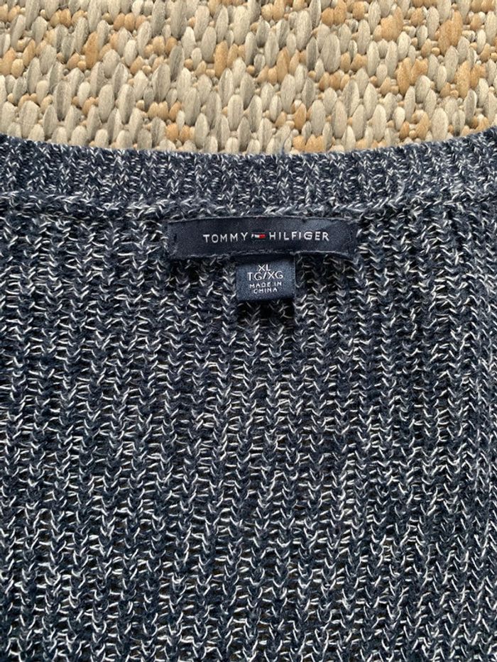 Pull / sweat col V long hiver Tommy Hilfiger en maille gris taille XL - photo numéro 5