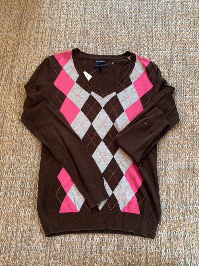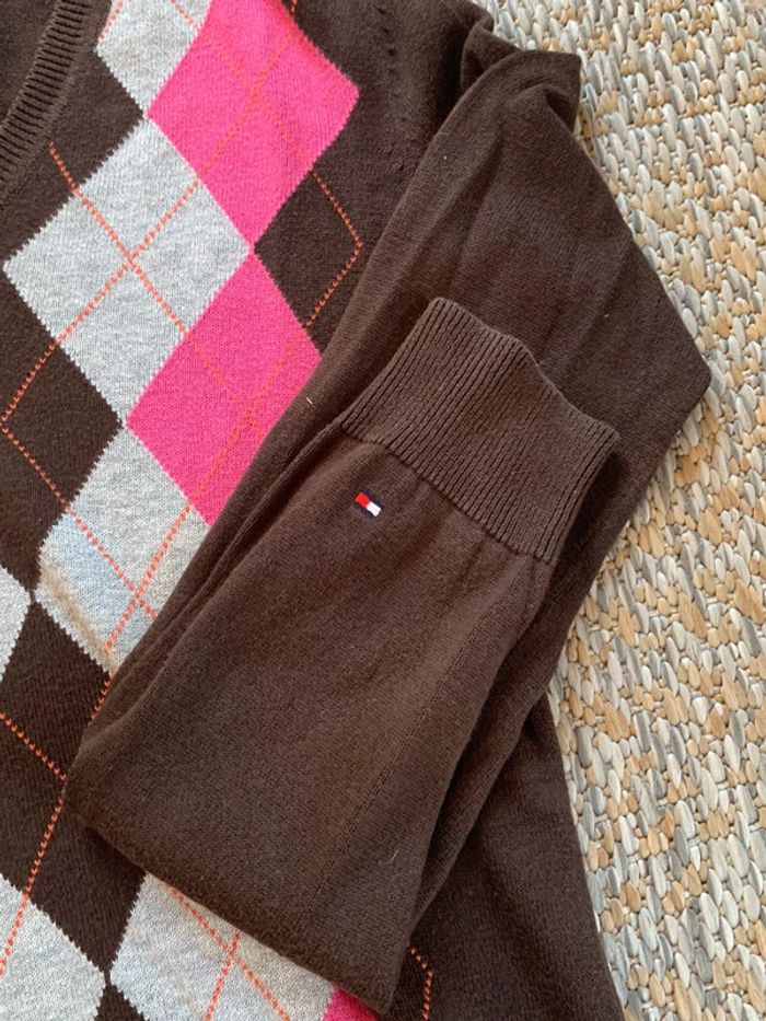 Pull / sweat col V Tommy Hilfiger motif vintage losange taille S - photo numéro 1