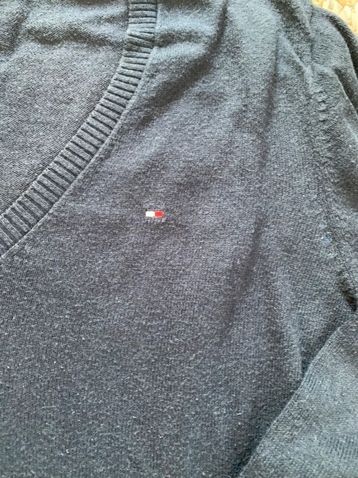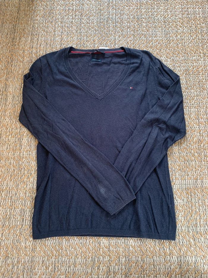 Pull / sweat col V Tommy Hilfiger bleu Marine taille M - photo numéro 1
