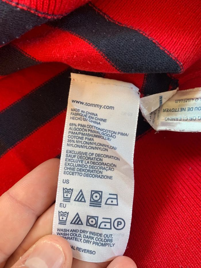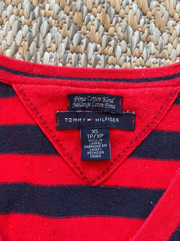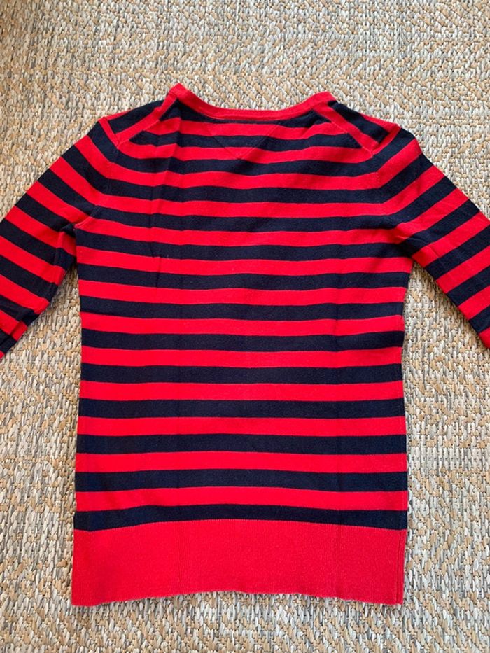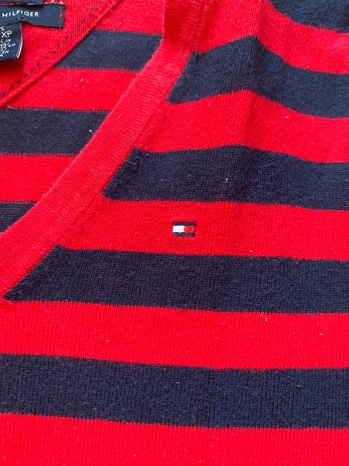 Pull / sweat col V Tommy Hilfiger style marinière bleu Marine rouge taille XS - photo numéro 5