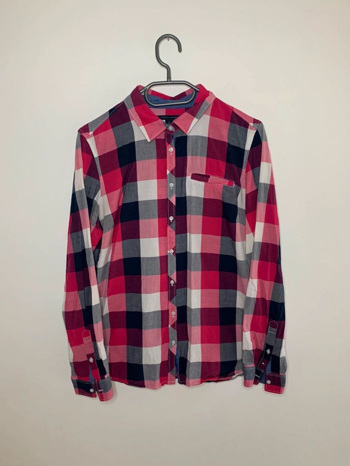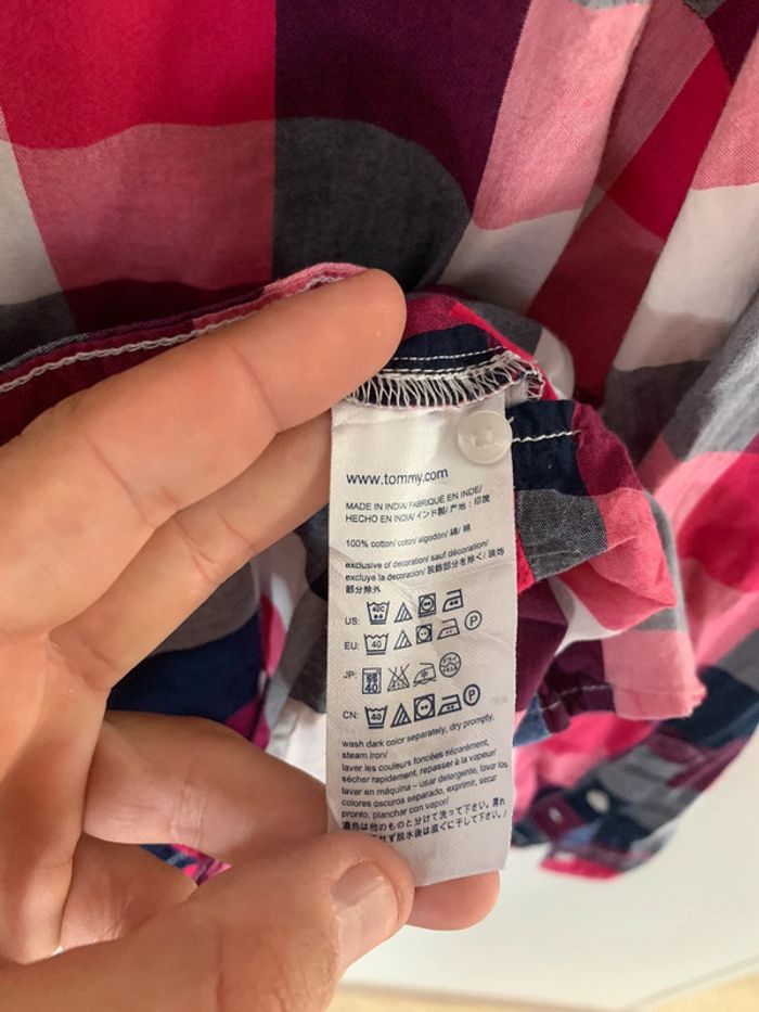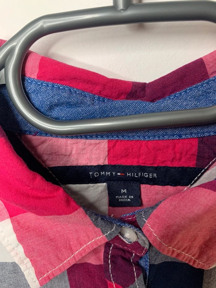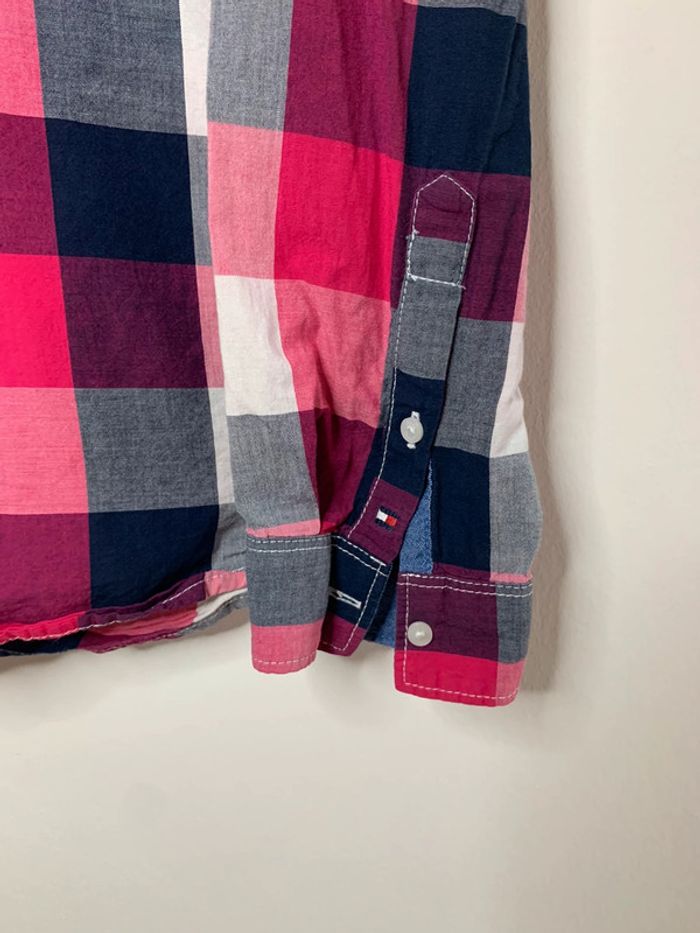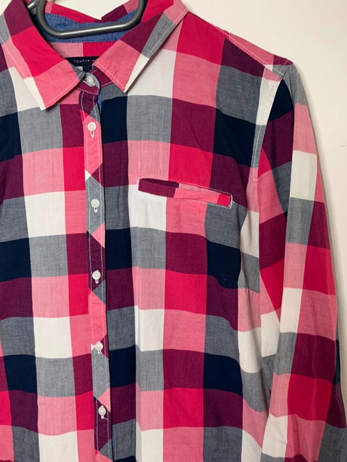 Produit : Chemise manches longues à carreaux femme Tommy Hilfiger taille M. couleur rose / blanc / noir Marque : Tommy Hilfiger Taille : M État : Très bon état
