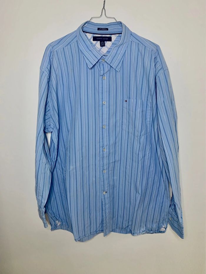 Produit : Chemise à manches longues Tommy Hilfiger bleu à rayures Marque : Tommy Hilfiger Taille : XL État : Bon état (défauts voir photo)