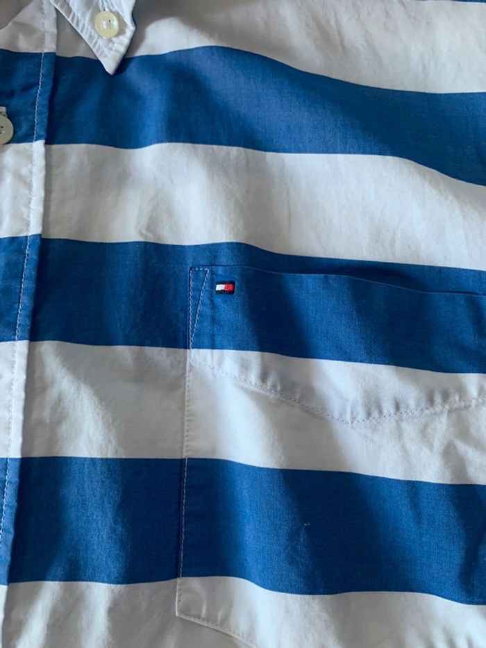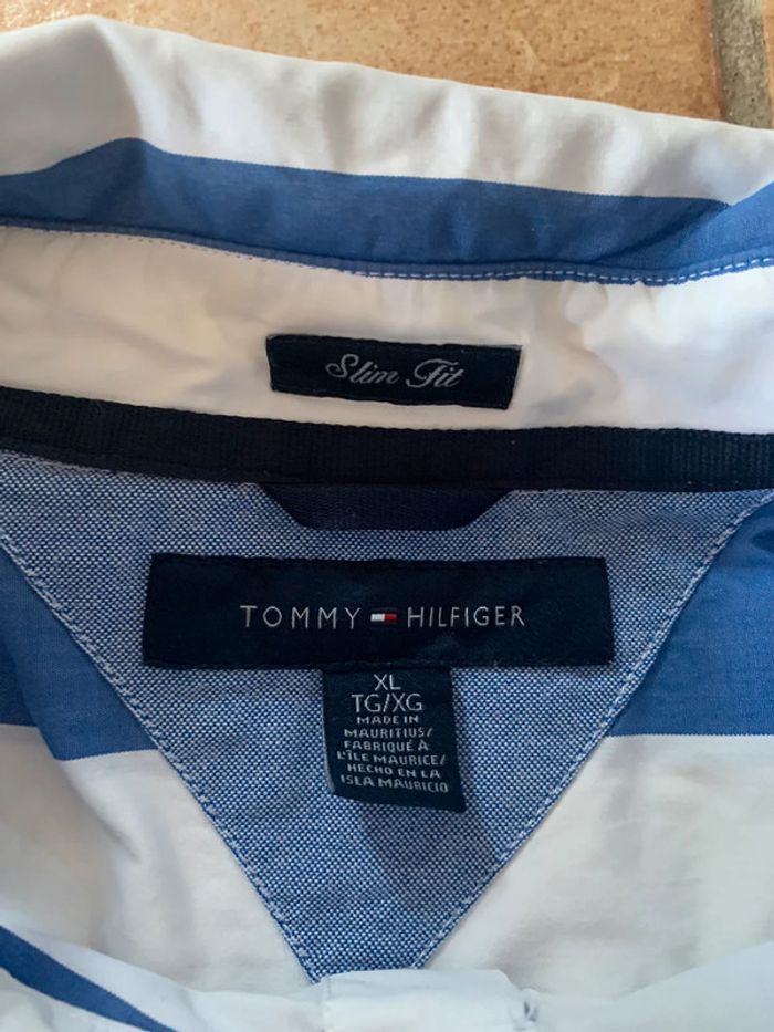 Produit : Chemise manches longues à rayures bleu Tommy Hilfiger taille XL slim fit. 100% coton Marque : Tommy Hilfiger Taille : XL État : Très bon état