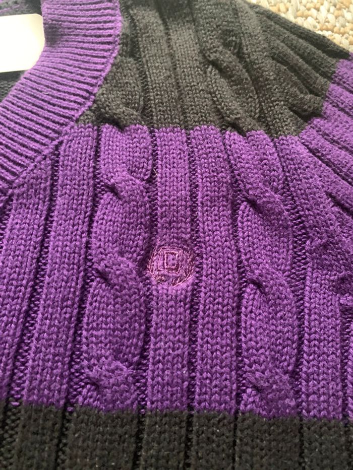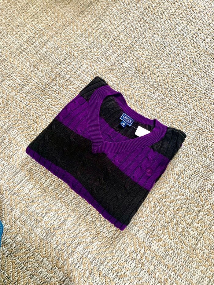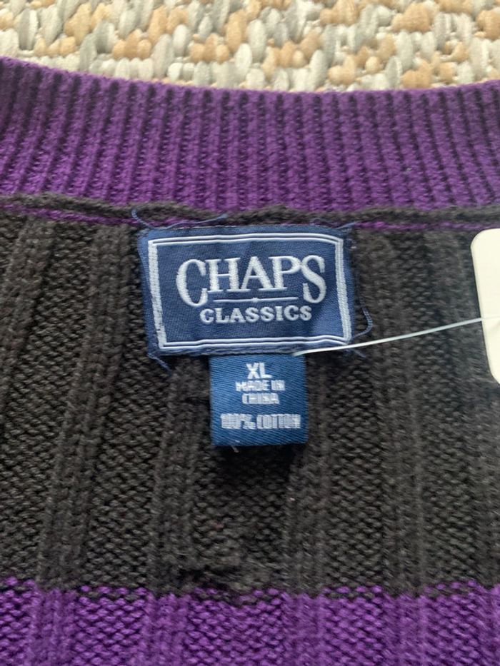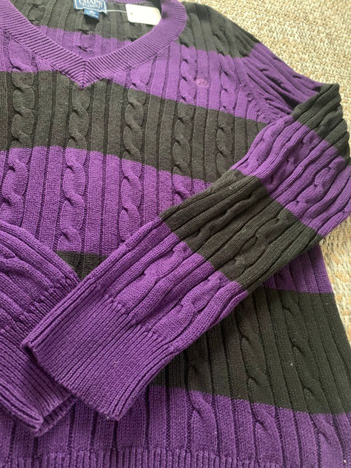 Pull / sweat col V torsadé Chaps Ralph Lauren noir / violet taille XL