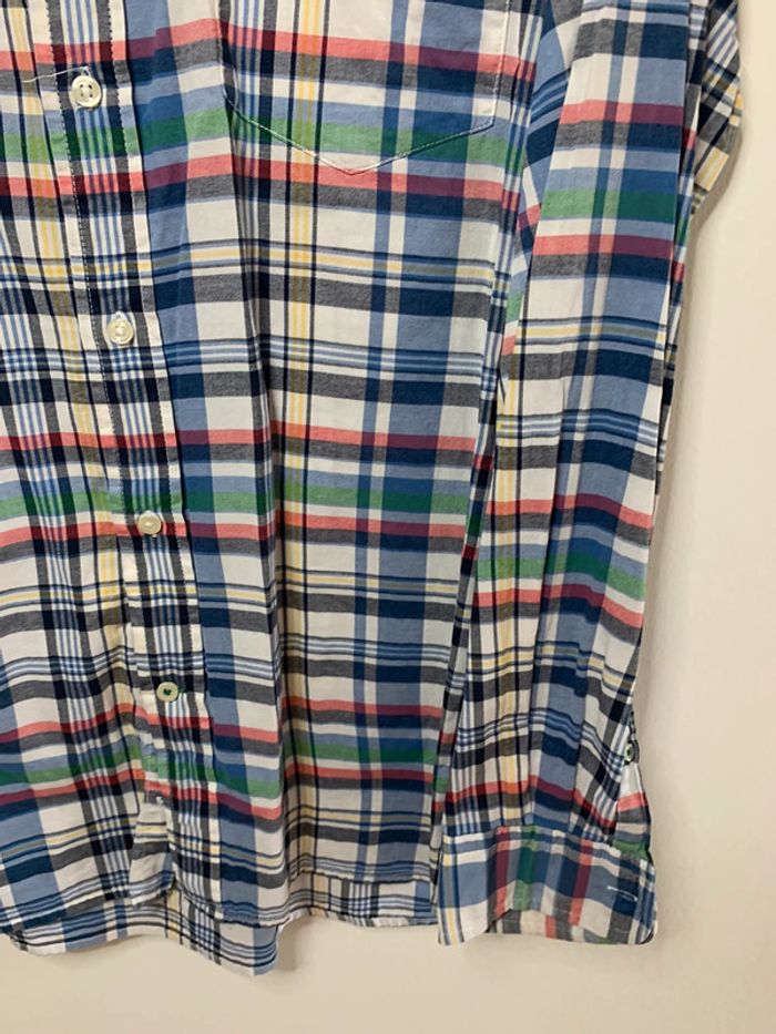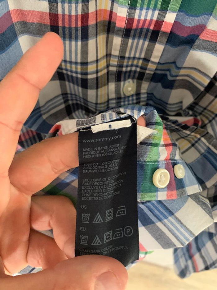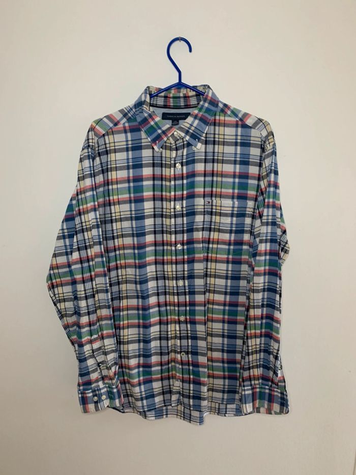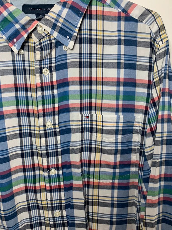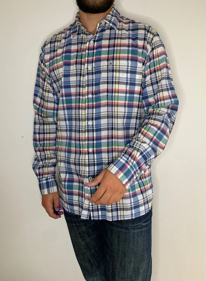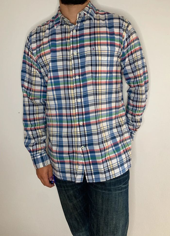 Produit : Chemise manches longues à carreau motifs vintage télévision tommy Hilfiger. 100% coton / multicolore. Logo de la marque brodé sur la poche avant Marque : Tommy Hilfiger Taille : L / XL mannequin : 180cm / 90kg État : Très bon état