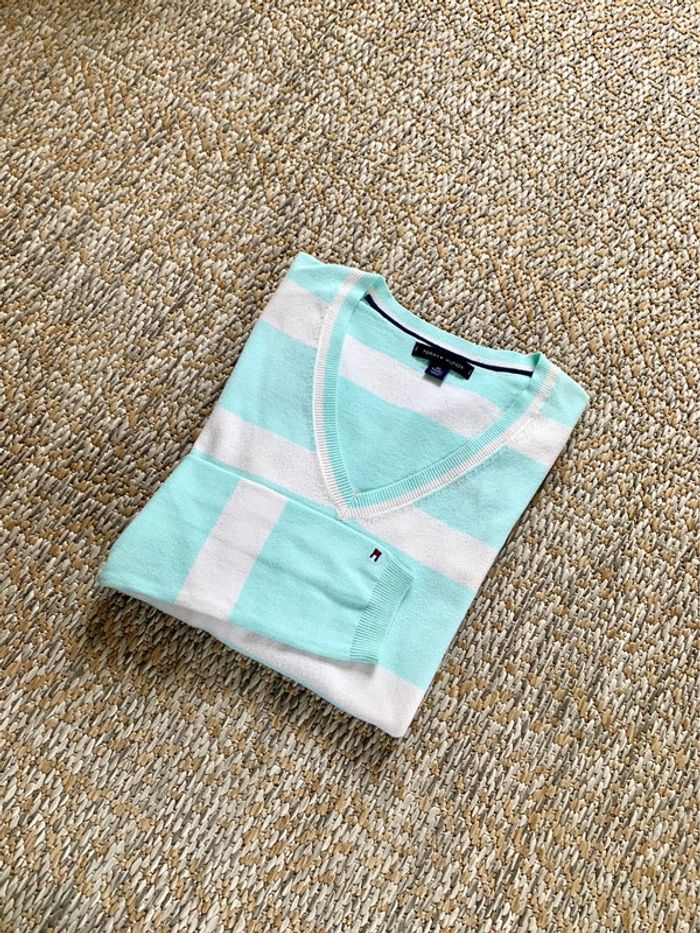 Pull / sweat col V Tommy Hilfiger style marinière taille XS - photo numéro 7