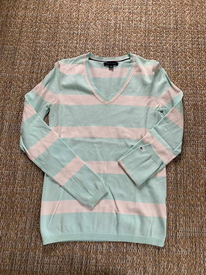 Pull / sweat col V Tommy Hilfiger style marinière taille XS - photo numéro 1