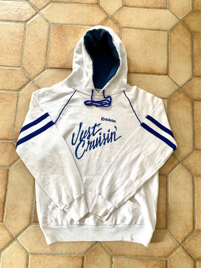 Produit : Sweat à capuche hoodie blanc unisexe vintage made in Usa 90s Bassett-walker Marque : Vintage Taille : M État : Très bon état (petite tache voir photo)