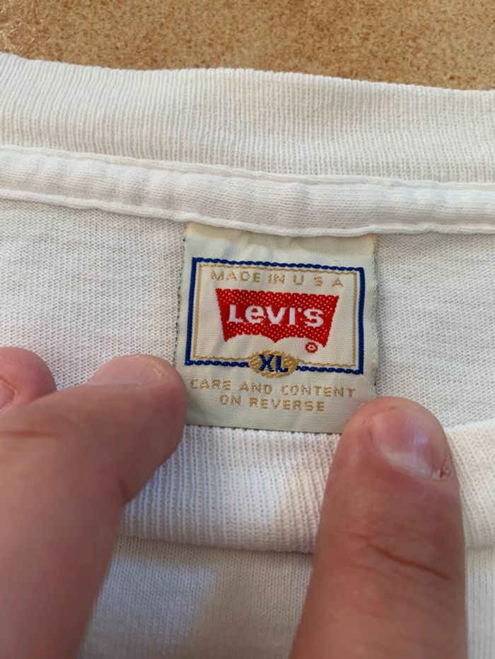 Produit : Tee shirt single stitch graphique vintage printed / imprimé Levi’s Made in USA année 90 RARE Marque : Levi’s Taille : XL - L État : Très bon état ( défauts minime voir photo)