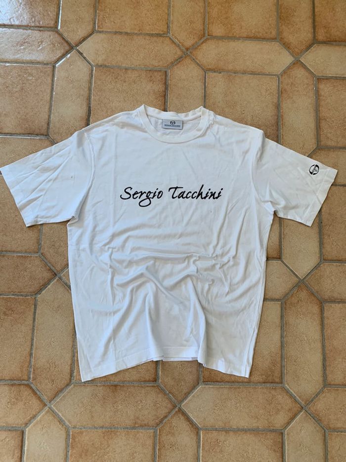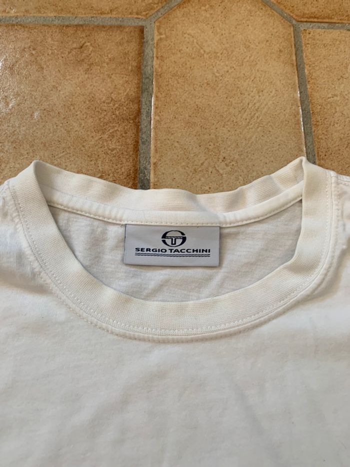 Produit : Tee shirt Printed / Imprimé Sergio Tacchini vintage Marque : Sergio Tacchini Taille : M État : Très bon état ( petit trou et tache voir photos)