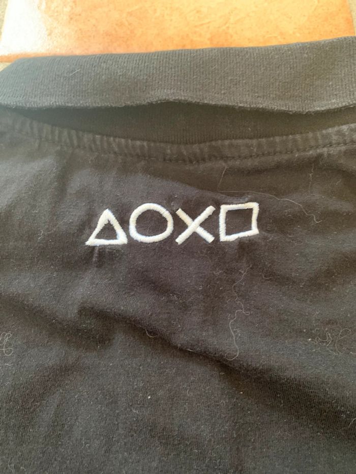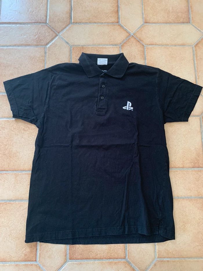 Produit : Polo vintage en matière tee shirt PlayStation distribué par Upperdeck (magasin canadien de cartes à collectionner). Le logo est brodé sur le devant et il y a aussi les touches mythiques des manettes PlayStation dans le col au dos Marque : Vintage Taille : S/M État : Très bon état ( petit trou voir photo)