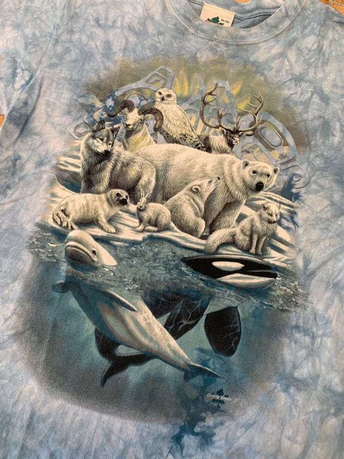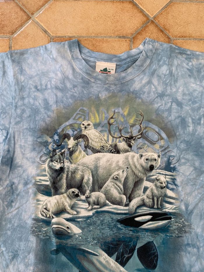 Tee shirt tye and dye printed / imprimé vintage 90’s winter animal quality good made in Canada