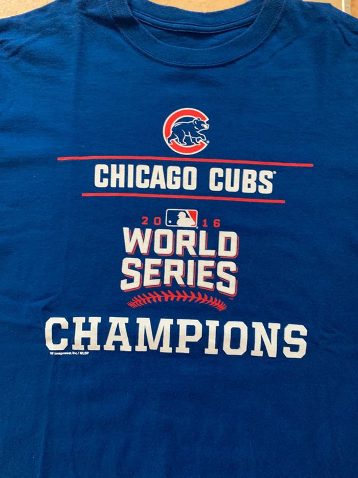 Produit : Tee shirt printed / imprimé unisexe Chicago bears champion world series 2016 MLB Marque : MLB Taille : M (mesures en photos) État : Très bon état
