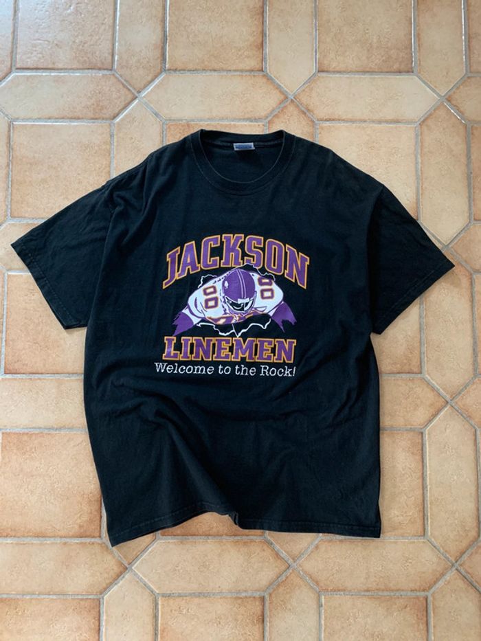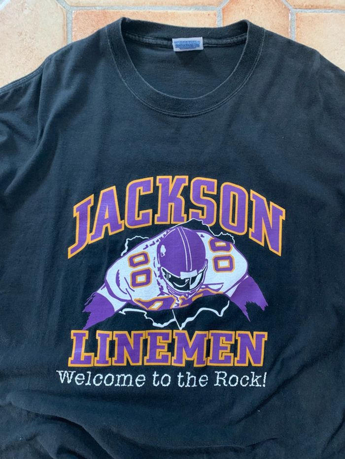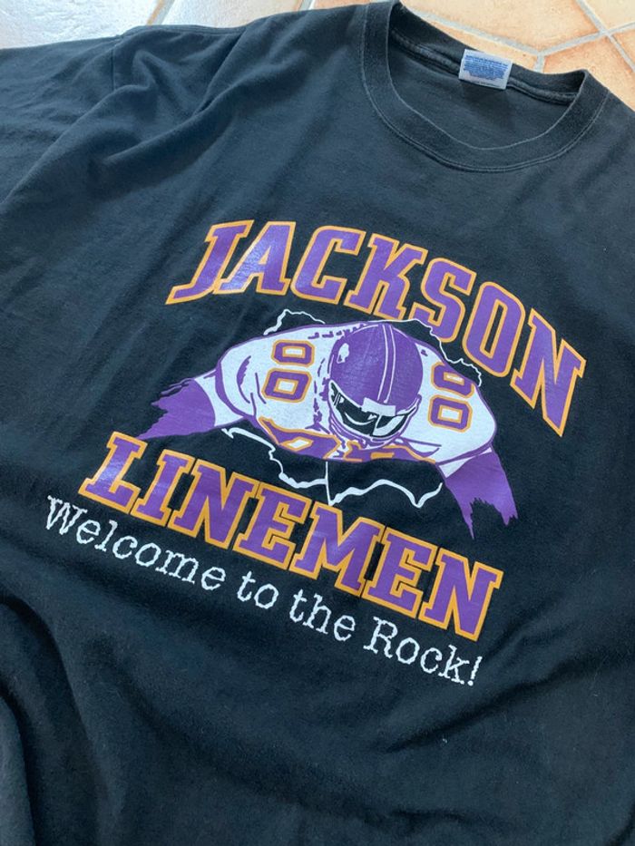Tee shirt graphique printed / imprimé vintage Hanes Jackson Linemen football USA